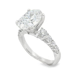 This exquisite oval diamond engagement ring features a brilliant center stone, surrounded by sparkling side diamonds that enhance its elegance. Crafted with precision, the ring's white gold band adds a touch of sophistication, making it the perfect symbol of love and commitment.