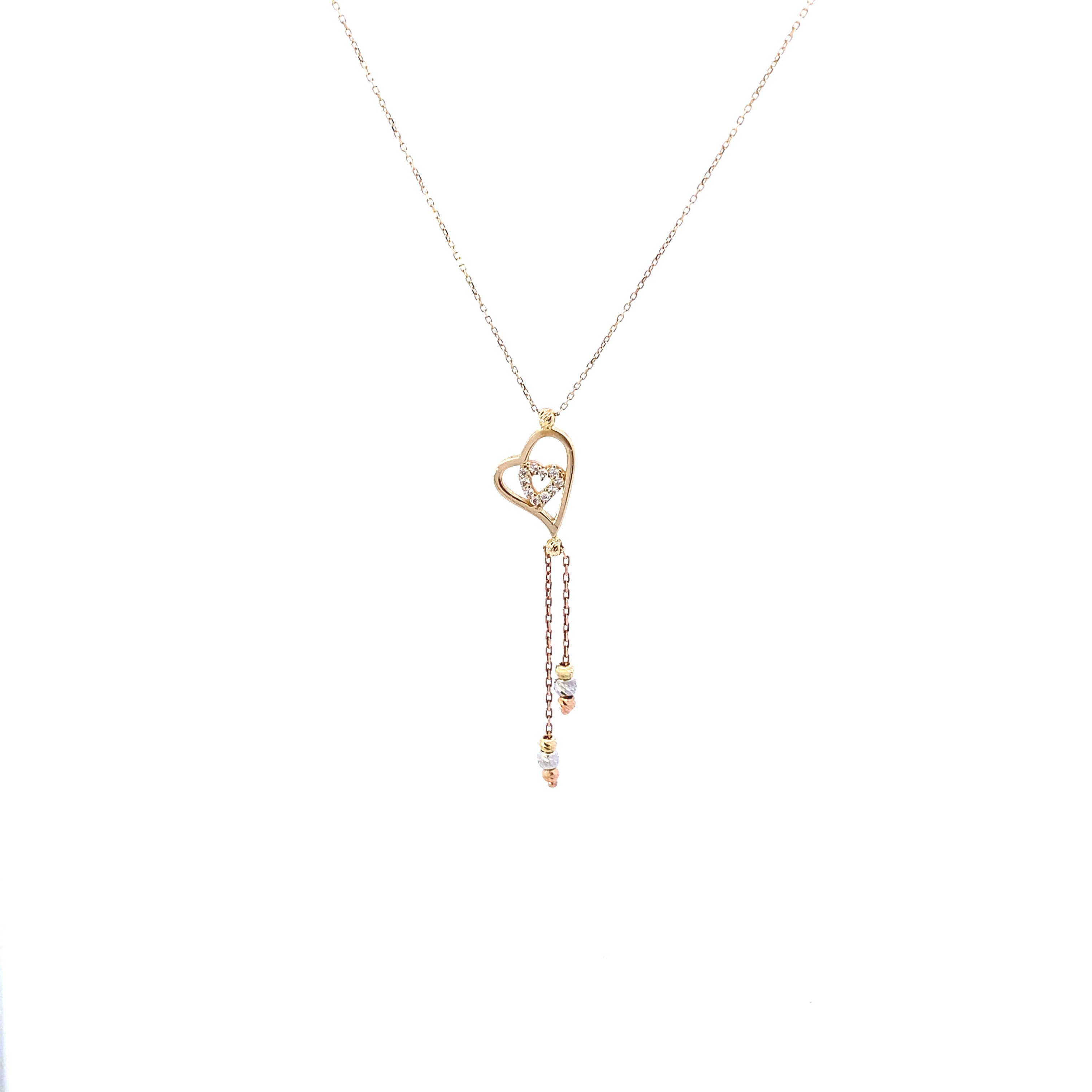 Real 14k yellow, rose and white gold necklace. Stones are cubic zirconia's.