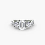 This elegant three-stone ring symbolizes your past, present, and future, elevated with a pavé band for extra sparkle and detail. A perfect union of meaning and brilliance.